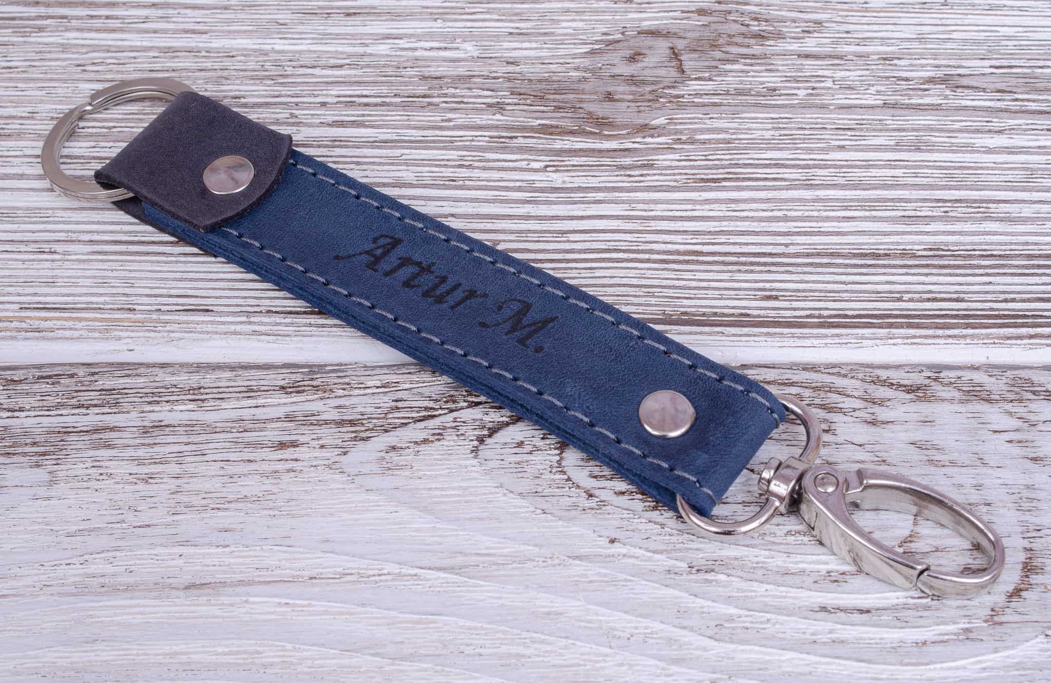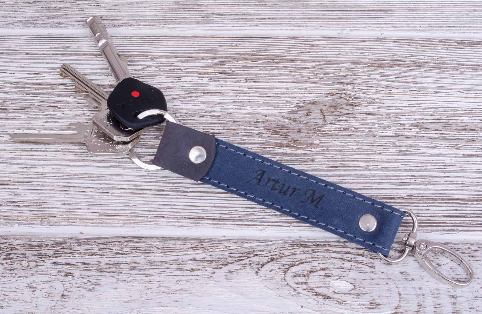 Skórzany brelok na klucze kolor Niebieski
