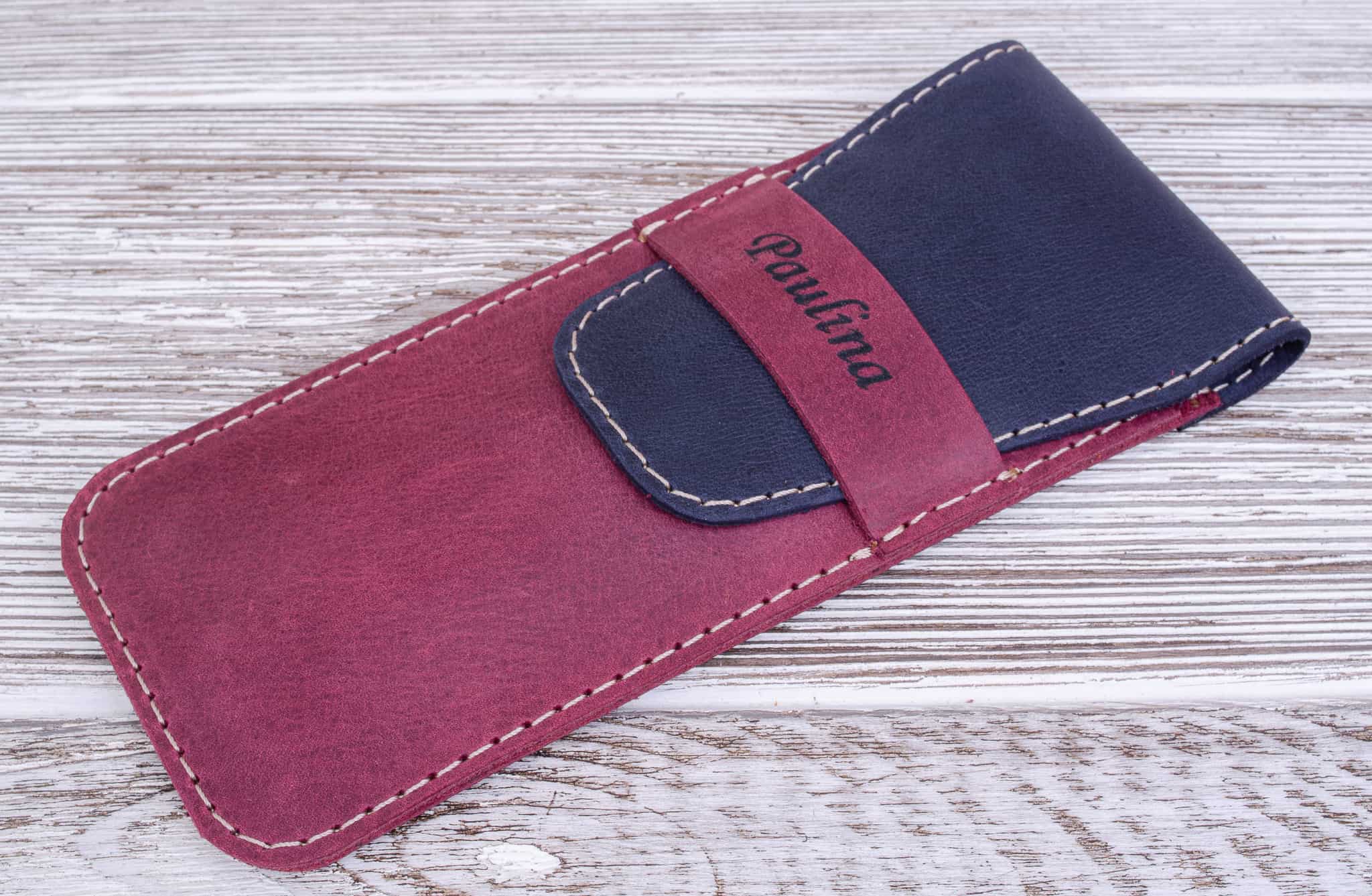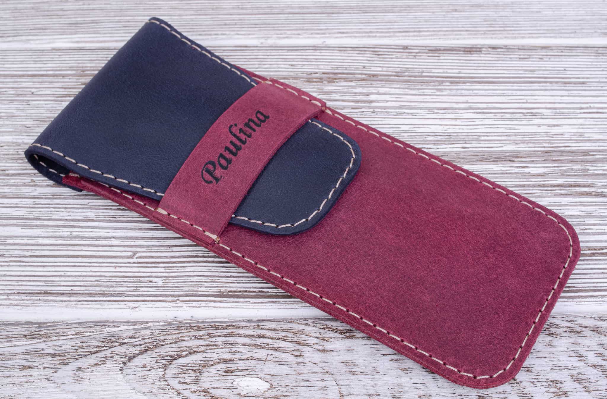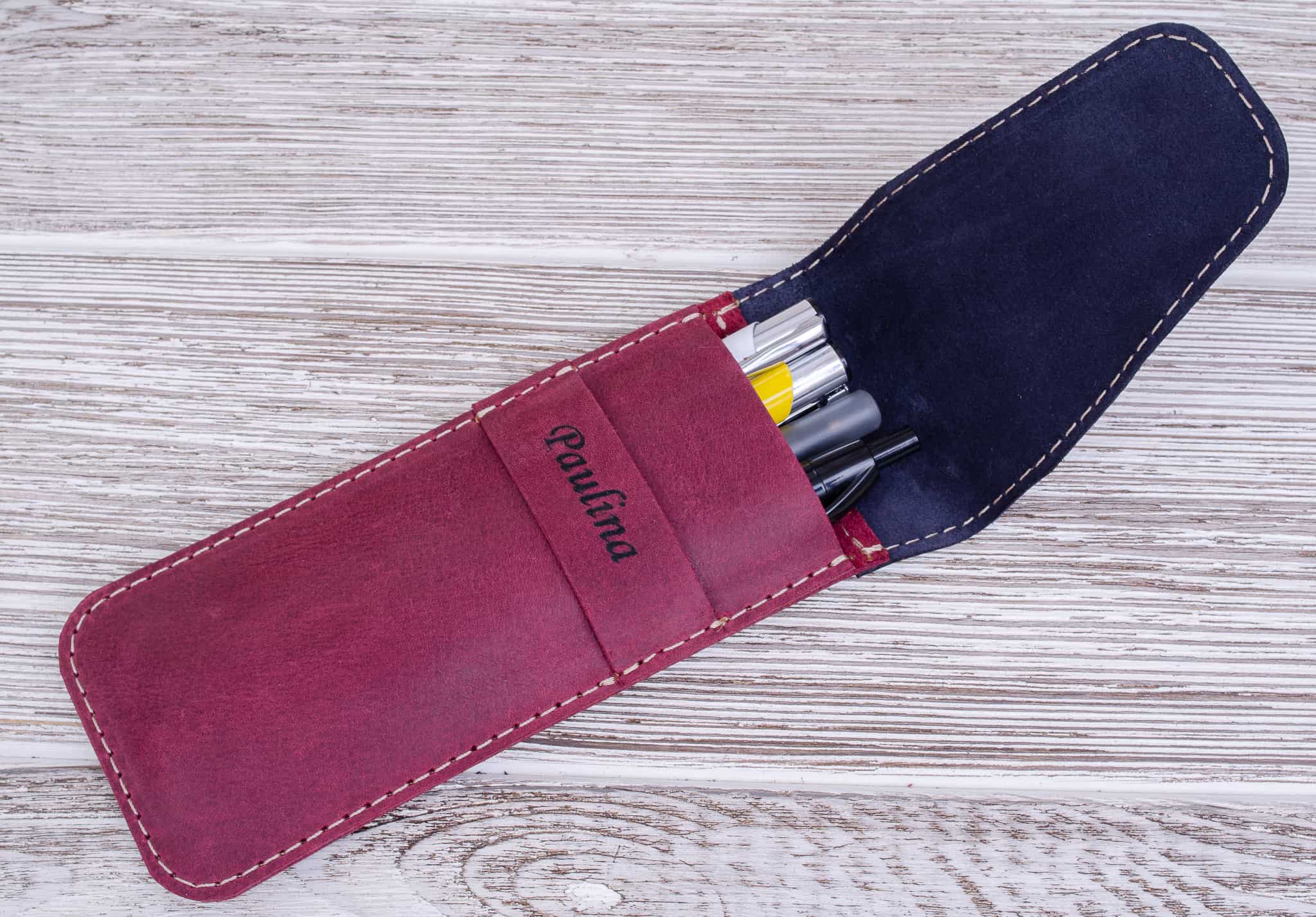 Skórzany piórnik na długopisy kolor Bordowy