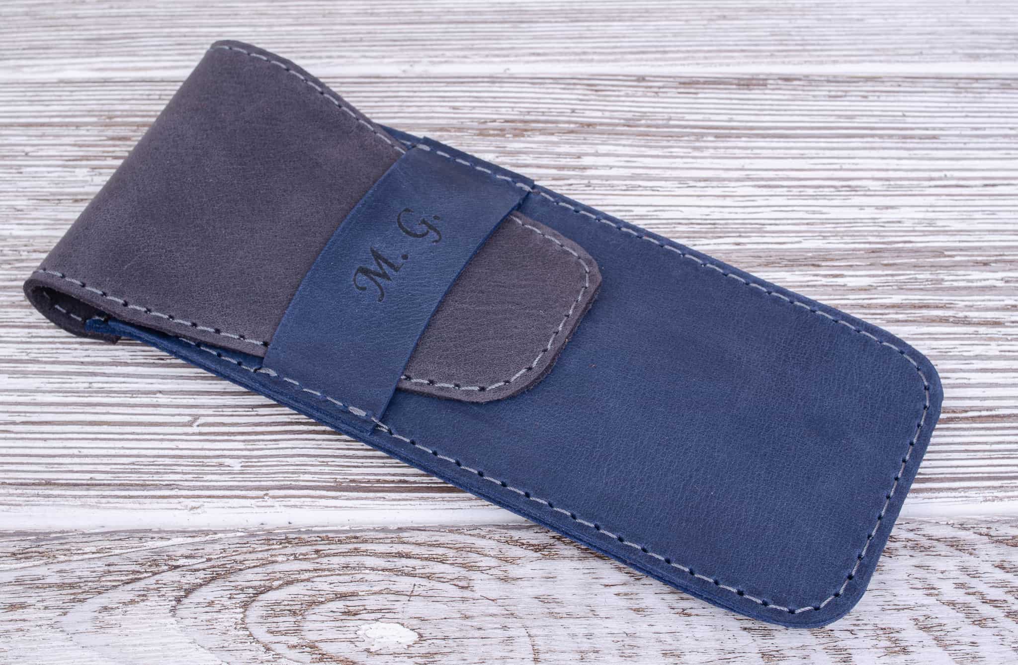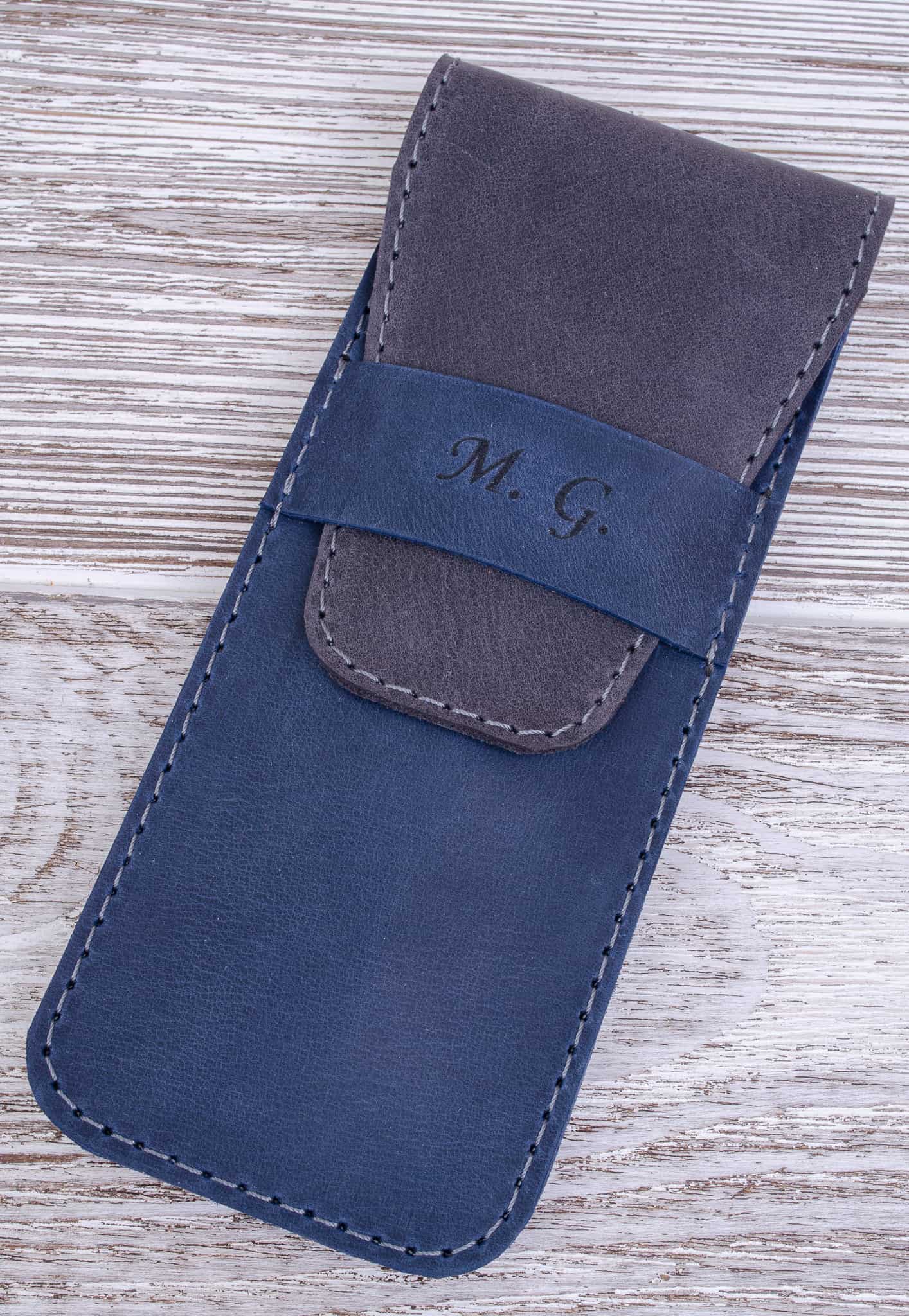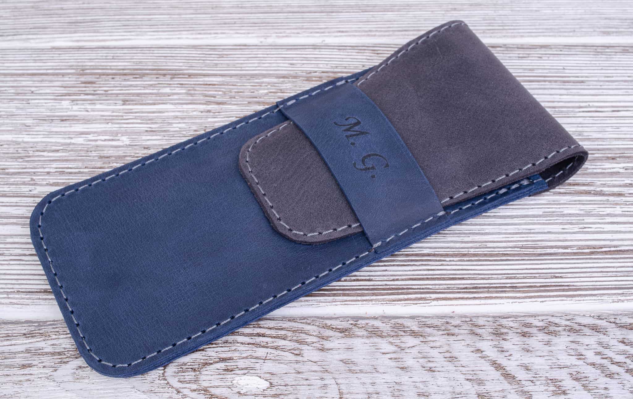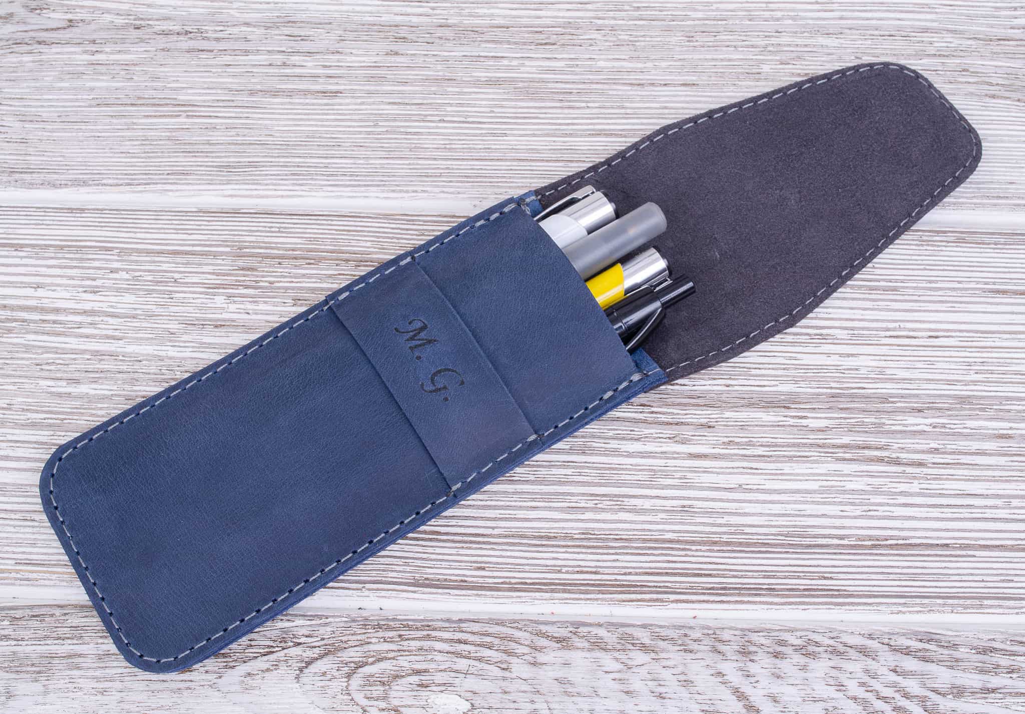 Skórzany piórnik na długopisy kolor Niebieski
