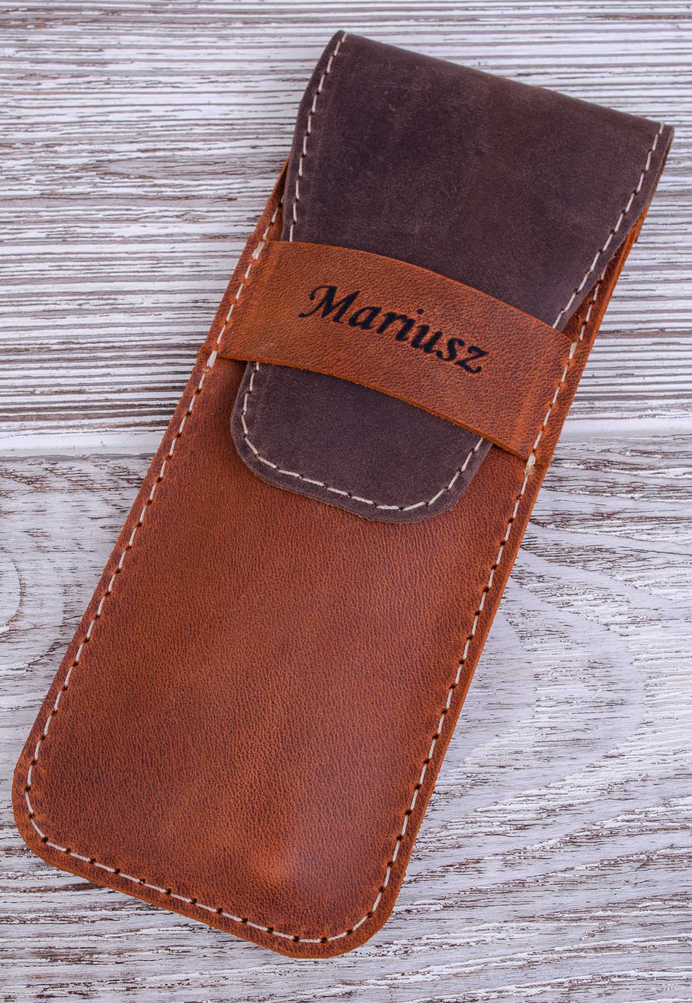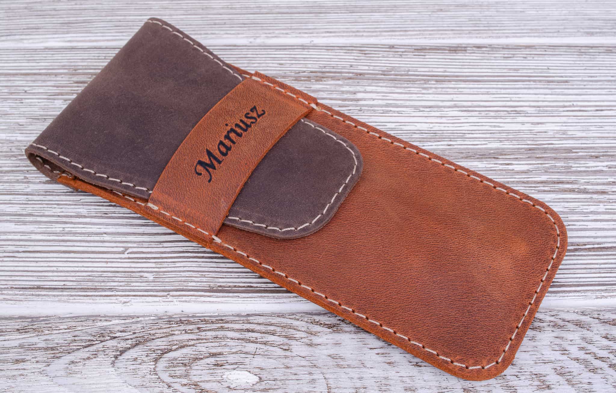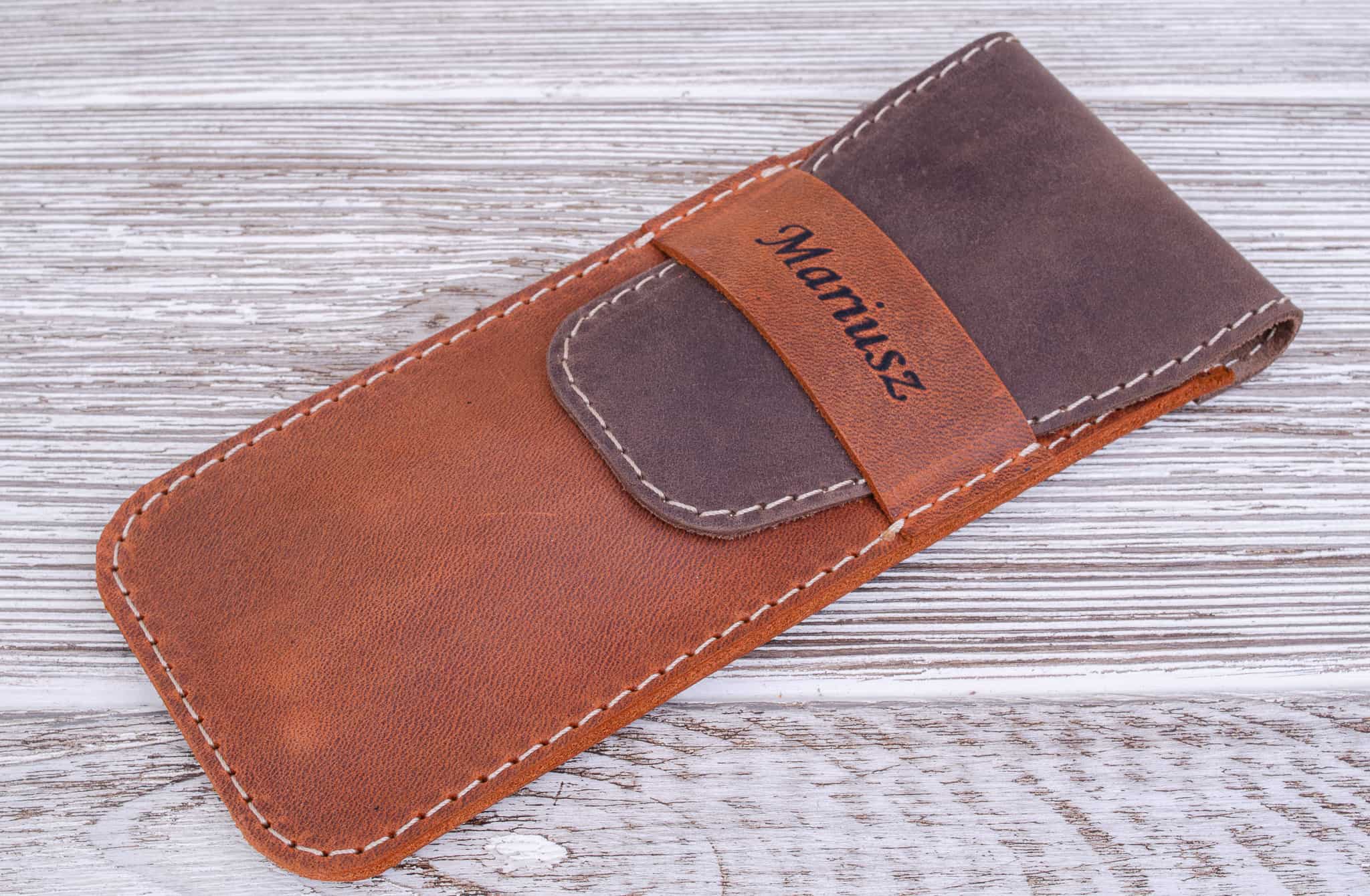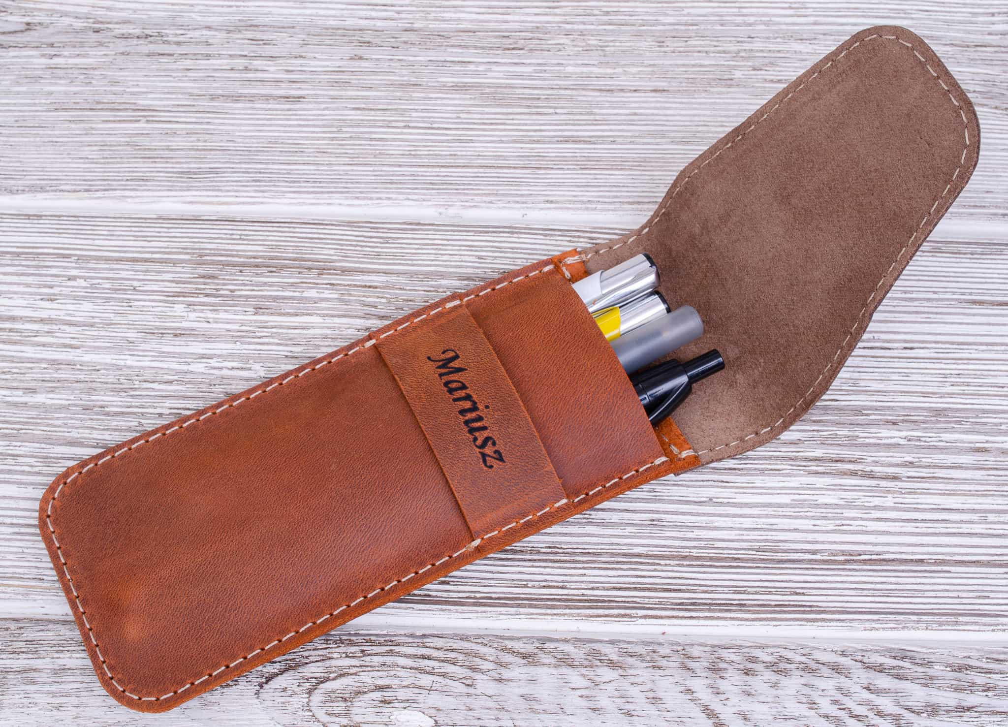 Skórzany piórnik na długopisy kolor Rudy Brąz